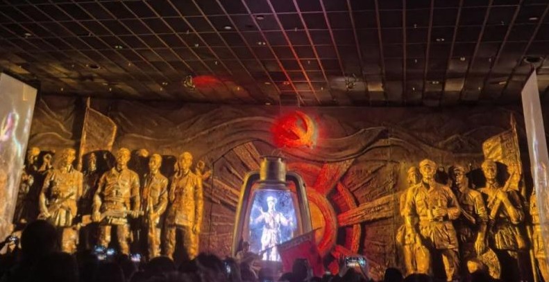 作为长征国家文化公园贵州段的标志性工程,红飘带以全域行浸式数字演艺为核心,通过虚拟现实、全息影像等前沿技术,将长征历史生动再现于学生眼前。跟随红旗前进的方向,师生们步入《红飘带・伟大征程》演艺区,随着一盏马灯微光渐亮,全息投影勾勒出的无名战士身影缓缓浮现,拉开了这场跨越时空的历史对话序幕。