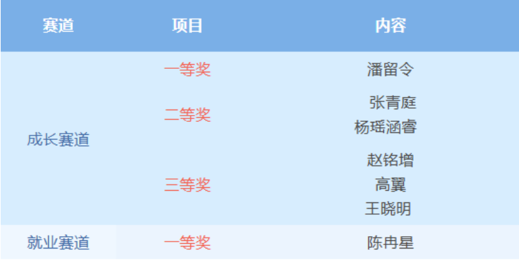 经过激烈角逐,各赛道选手脱颖而出,以下是获奖名单: