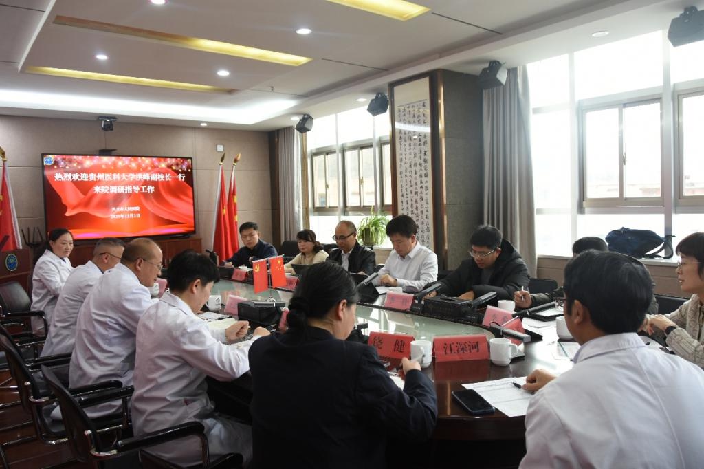 下午,洪峰带队赴贵州医科大学附属兴义医院就临床教学指导、人才双向交流及科研协同创新等议题展开深入探讨。双方达成共识,将进一步加强高校教师与医院医护人员的常态化交流机制,共同组建跨学科教学科研团队,并重点围绕公共卫生领域联合开展科研项目,整合双方优势资源,推进科研成果转化应用。