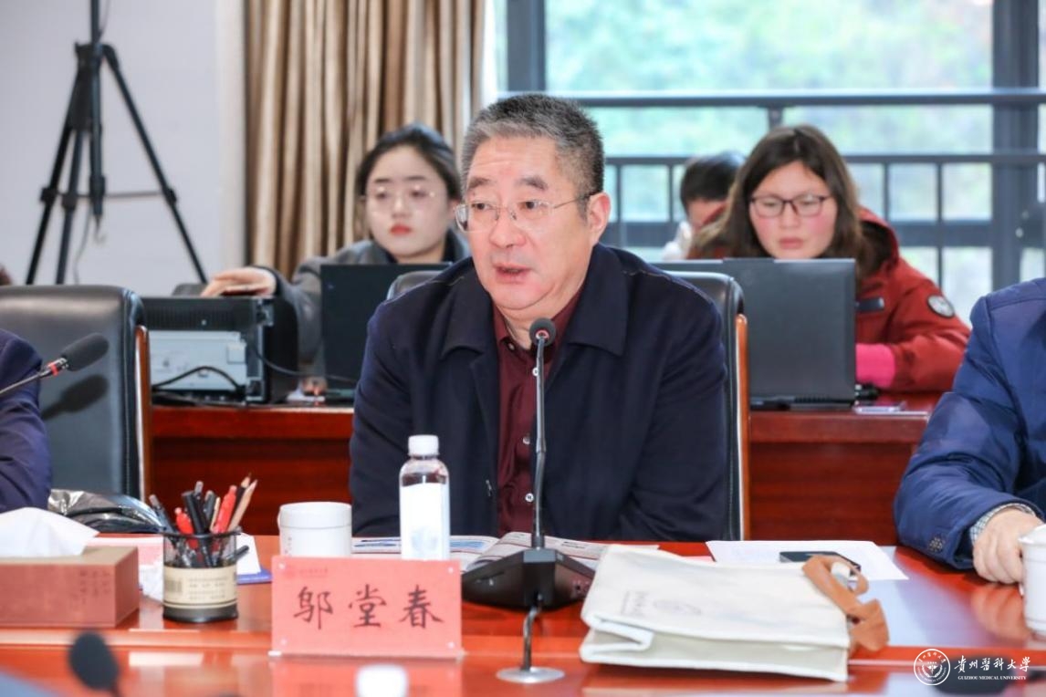 1月7日上午,贵州医科大学环境污染与疾病监控教育部重点实验室(以下简称环控重点实验室)第三届学术委员会第四次会议(2025年度)在我校云漫湖校区召开。华中科技大学邬堂春院士、陆军军医大学曹佳教授、中国疾病预防控制中心施小明研究员、青岛大学郑玉新教授、复旦大学屈卫东教授、中山大学陈雯教授、哈尔滨医科大学高彦辉研究员、南方医科大学杨杏芬教授、苏州大学秦立强教授、中国医科大学徐苑苑教授、南京医科大学刘起展教授、西安交通大学张峰教授、贵州产业技术发展研究院罗鹏教授、贵州医科大学郭兵教授等委员线下出席会议,加拿大多伦多大学魏晓林教授线上参加会议。贵州医科大学党委常委、副校长曾柱教授出席会议,环控重点实验室荣誉主任张爱华教授、主任洪峰教授,科技处处长李一欣以及环控重点实验室全体教师参加会议。会议开幕式由李一欣主持。