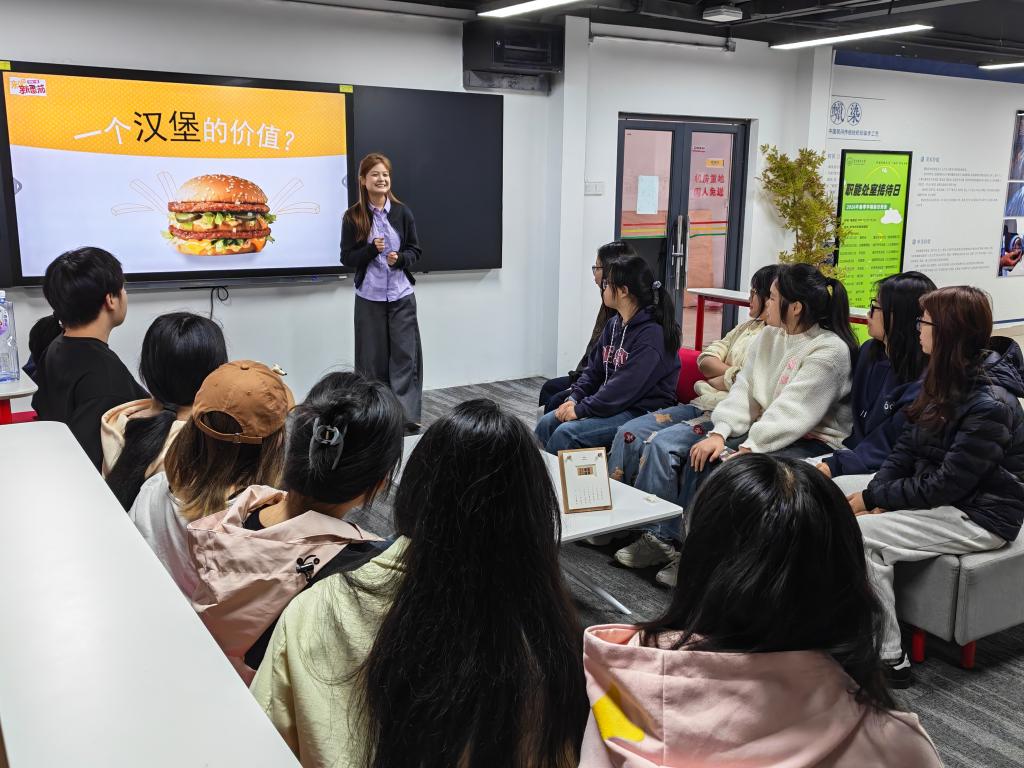 宣讲会上,贵州麦当劳招募中心负责人贾雨欣首先通过品牌宣传片、PPT 讲解等形式,向在场师生全面介绍了企业发展历程、企业文化、业务布局及人才培养体系,详细解读了招聘要求、岗位职责、薪资福利与清晰的职业晋升路径,特别介绍了针对应届毕业生的专属管培生计划,为同学们描绘了广阔的职业发展蓝图。
